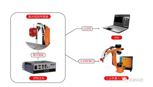 英萊激光視覺焊縫跟蹤系統(tǒng),可配套多種機(jī)器人即插即用,位于焊槍前端的傳感器可主動(dòng)采集焊縫信息,控制主機(jī)負(fù)責(zé)焊縫信息的實(shí)時(shí)處理,并與工業(yè)機(jī)器人或焊接專機(jī)保持實(shí)時(shí)通訊,實(shí)現(xiàn)焊縫特征點(diǎn)尋位糾偏、焊縫實(shí)時(shí)跟蹤的功能,根據(jù)實(shí)際情況矯正焊接軌跡。
